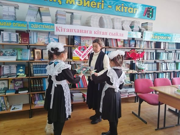 Түркістан облысы. Отырар ауданы."Сейітжан Құртаев атындағы шағын жинақты жалпы білім беретін "КММ" "Адал Азамат"Біртұтас тәрбие бағдарламасы "Шын жүректен кітап сыйла"челленджін жалғастыра отырып,мектеп ұстаздары мен оқушылары арасында "Кітапханаға кітап сыйла"атты ашык есік күні өтті.